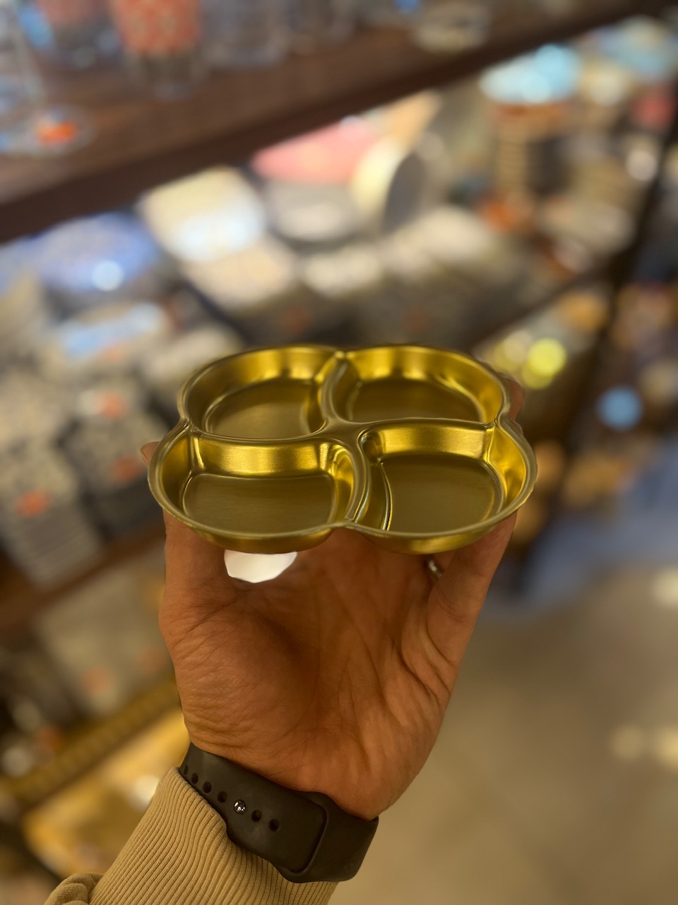 ظرف سرو و اردوخوری چهار خانه طرح گل استیل ۳۰۴ طلایی ضد زنگ با رنگ ثابت شعله مستقیم مناسب پذیرایی و سرو تنقلات و مزه محصول وارداتی